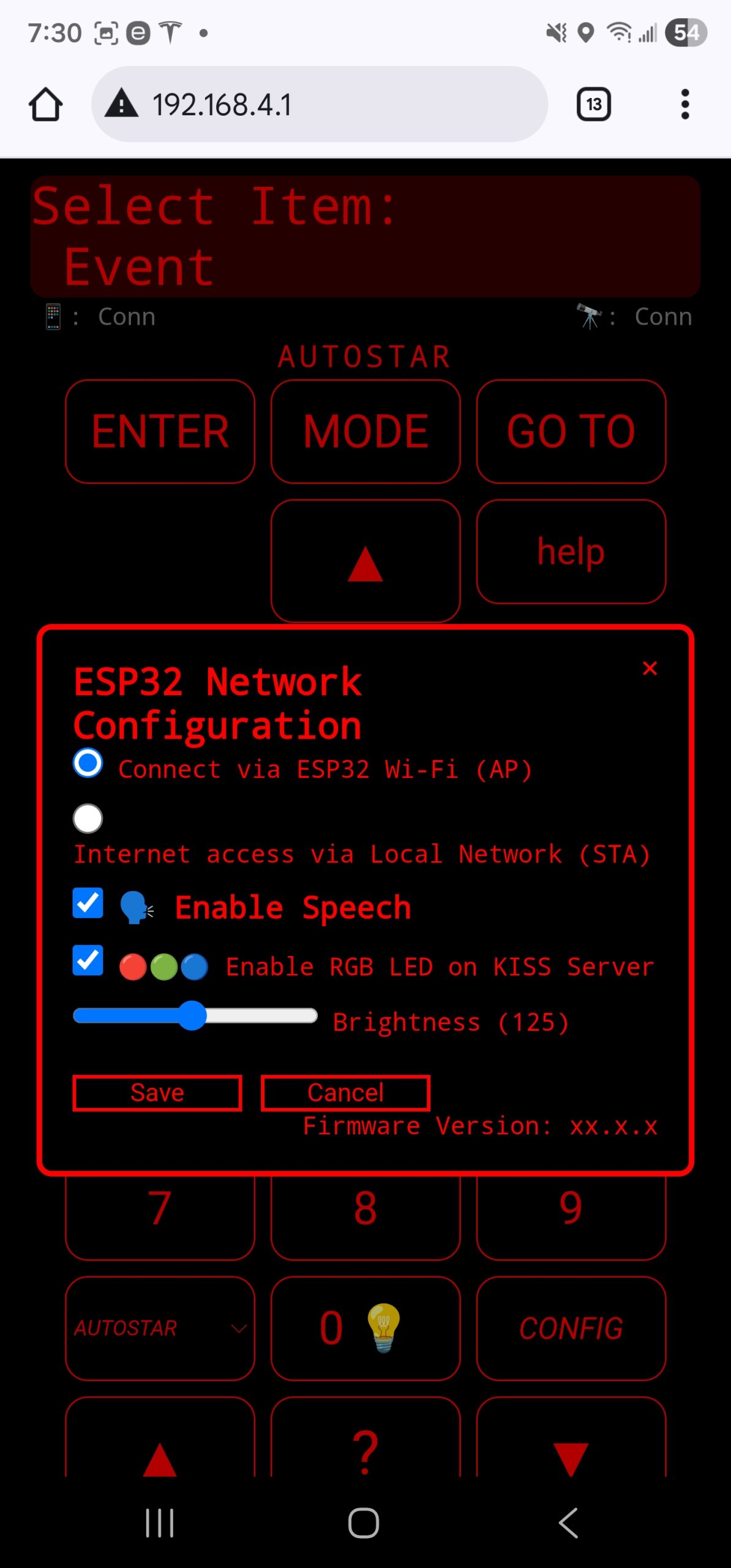 The AUTOSTAR Emulator for Web Browsers (ASEW) is the modern replacement for failed/failing MEADE® hand controllers. Powered by the ESP32-S3, ASEW connects directly to your telescope over RS-232 and transforms any device — laptop, tablet, or smartphone — into a wireless hand controller.