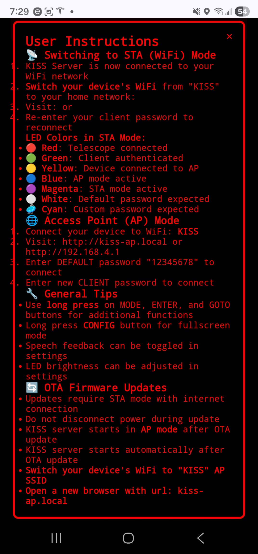 • 📡 Always up-to-date — Built-in OTA (Over-The-Air) firmware updates, so you can upgrade straight from your browser with no cables or special tools.
